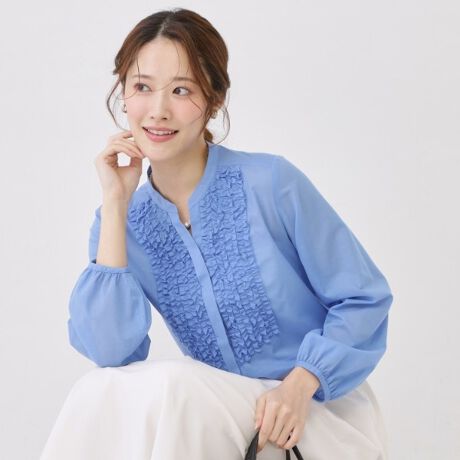 華やかな前フリルが目を惹くシアーローンブラウス。