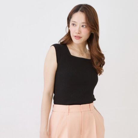 スクエアネックで、インナーとして着ていただくと直線が今らしいシャープな印象に。