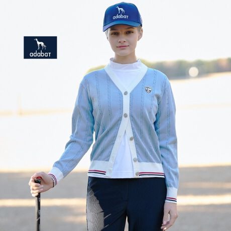 このVネックカーディガンは、マリンテイストのデザインで、ブランドの個性を鮮やかに表現。