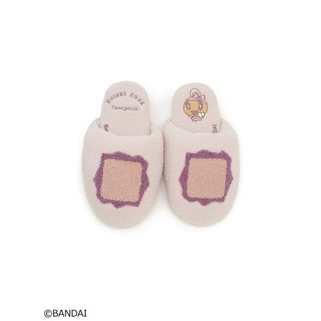 アイマスクやナイトキャップなど、ルームウェアをまとった「たまごっち」たちを刺繍した、春らしいニュアンスカラーのルームシューズです。