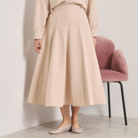ゴアード(切り替え)デザインで腰周りはすっきりと、裾に向かってエレガントに広がるシルエット。