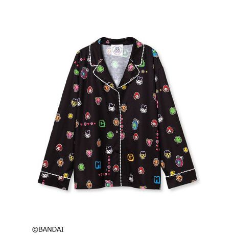 「たまごっち」ならではのカラーのドット絵をプリント柄で表現した、カラフルでPOPな開襟シャツです。