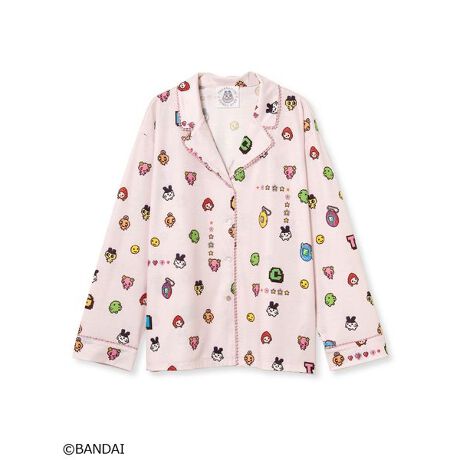 「たまごっち」ならではのカラーのドット絵をプリント柄で表現した、カラフルでPOPな開襟シャツです。