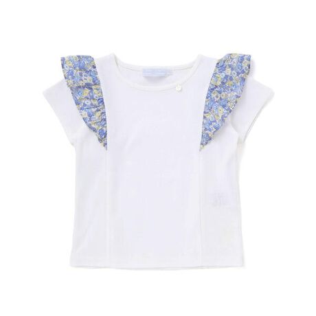 リバティプリントの生地をフリルに使用したデザインの女の子用Tシャツです。