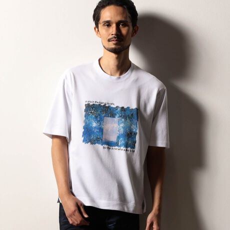 油絵調の抽象画デザインが存在感抜群のクルーネックTシャツ。