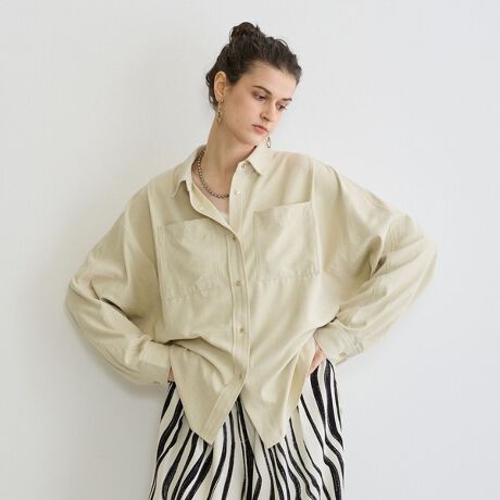 柔らかな質感とリラックスした着心地のピーチ素材のシャツ。
