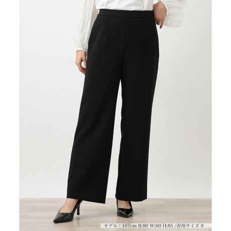 シワになりにくいジャージのような風合いのハイパワーストレッチ素材を使用したパンツです。特殊な加工により、膨らみと風合いの良さを出し、品の良さがありながらもイージーケアを実現しました。脚のラインを拾わない程良いワイドストレートシルエットが、しなやかに揺れて洗練された印象を与えます。後ろウエストはゴム仕様でストレスフリーな履き心地ながら、フロントはすっきりとしたデザインです。
