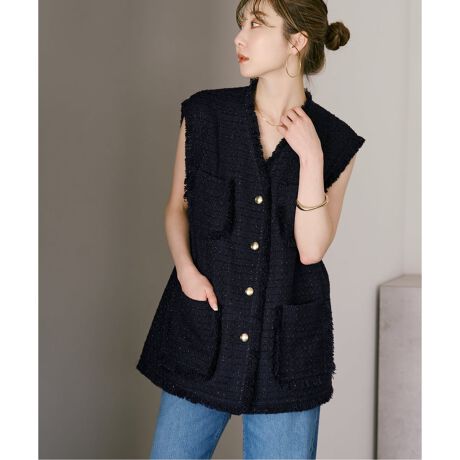 別注ツイード生地採用した、NOBLEこだわりのノーカラージレ。