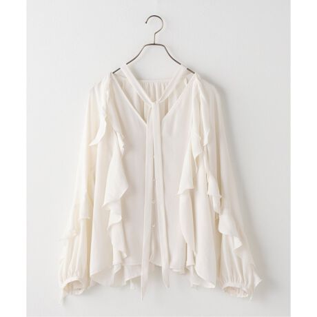 透け&落ち感のある生地を採用することで、たっぷりと施されたフリルも甘くなりすぎずに着られる1枚。