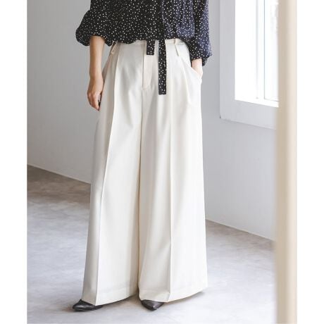 トレンドのダブルウエストデザインがポイントのワイドパンツ。