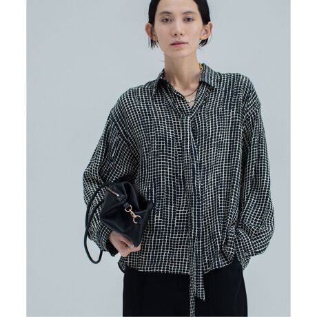 繊細な幾何学柄を上質な素材にのせた、ラグジュアリーな佇まいのリボンシャツ。