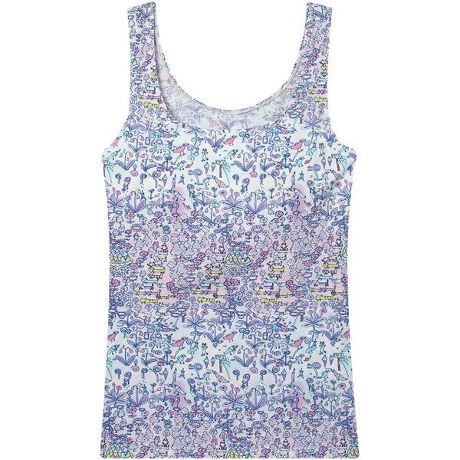 ・身生地に、伸びがよくやわらかいベア天竺素材を使用・森の中でグランピングを楽しんでいるたくさんのネコや動物、前に広がる花畑で鳥たちが楽しそうにおしゃべりをしている様子を表現した柄・シンプルなノースリーブのニットトップ・ネックやアームホールにはソフトなゴムを使用し、さらに身生地で包みこんだ、肌にゴムが直接あたらない設計でやさしい着ごこち・テンセル□ブランド繊維を使用した、風合いがよく、伸縮性のある天竺素材・テンセル□ブランド繊維は適切に管理された森林の木材( パルプ )から生まれた繊維・パッド受けあり/パッドあり( パッドは取りはずし可能 )※TENCEL□及びテンセル□は、Lenzing AGの商標です●詳細情報パッド受けあり/パッドあり※お洗濯は、必ず「取扱い表示」にしたがってください。