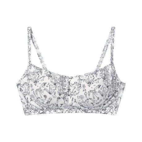 ・身生地に、伸びがよくやわらかいベア天竺素材を使用・薄手のストレッチ性のある生地で、軽やかなつけごこち・森の中でグランピングを楽しんでいるたくさんのネコや動物、前に広がる花畑で鳥たちが楽しそうにおしゃべりをしている様子を表現した柄・ストラップも同素材で肩の肌あたりがやわらか・テンセル□ブランド繊維を使用した、風合いがよく、伸縮性のある天竺素材・テンセル□ブランド繊維は適切に管理された森林の木材( パルプ )から生まれた繊維・パッド受けあり/パッドあり( パッドは取りはずし可能 )※TENCEL□及びテンセル□は、Lenzing AGの商標です●詳細情報ワイヤーなしパッド受けあり/パッドあり※お洗濯は、必ず「取扱い表示」にしたがってください。