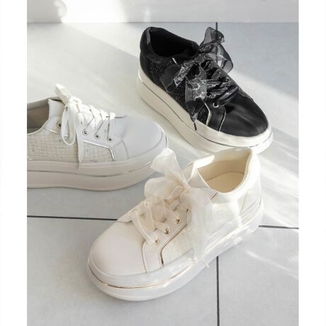 <26春夏新作>【22.5-25.5】2WAY シアーリボンプラットフォームスニーカー