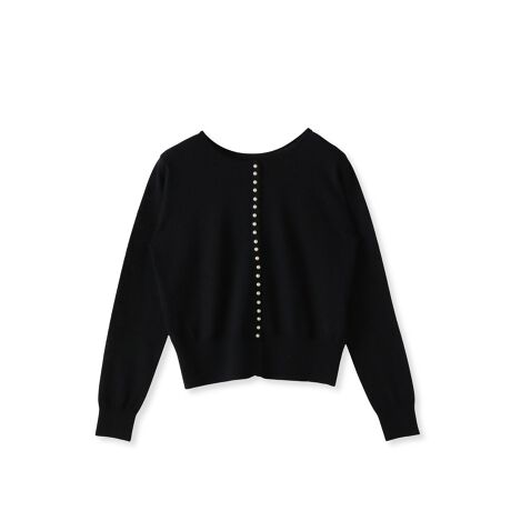 パールボタンが縦ラインを美しく引き立てる、上品なニットプルオーバー。