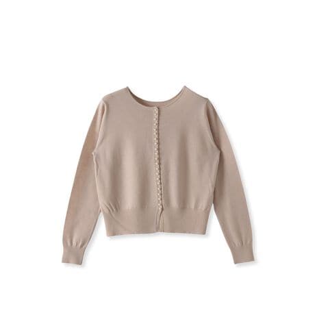 パールボタンが縦ラインを美しく引き立てる、上品なニットプルオーバー。