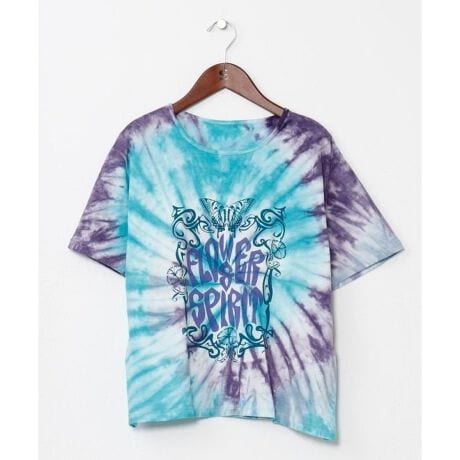 [型番:IAT-6101-2026]ヒッピームードあふれるタイダイ柄のTシャツ。ヴィンテージ感ある色合いとすっきりとしたシルエットが魅力。衿まわりは丈夫で型崩れしにくい縫製で、ラフながらもきれいに着られる仕様。蝶々、バス、きのこの3柄展開。