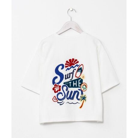 [型番:4CA-6156-2026]サガラ刺しゅうと機械刺しゅうを組み合わせたポップなデザインが特徴のTシャツ。ワッフル調の生地で通気性が良く、軽やかな着心地。短丈シルエットでトレンド感のあるスタイルを楽しめます。