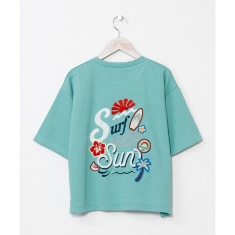 [型番:4CA-6156-2026]サガラ刺しゅうと機械刺しゅうを組み合わせたポップなデザインが特徴のTシャツ。ワッフル調の生地で通気性が良く、軽やかな着心地。短丈シルエットでトレンド感のあるスタイルを楽しめます。