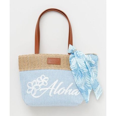 [型番:42QP6102-2026]スパンコールのALOHAロゴが目を惹くミニトートバッグ。デイリー使いにちょうどいいサイズ感で、ファスナーと内ポケット付きの安心設計。軽やかで持ち運びやすく、リゾートコーデにもぴったり。