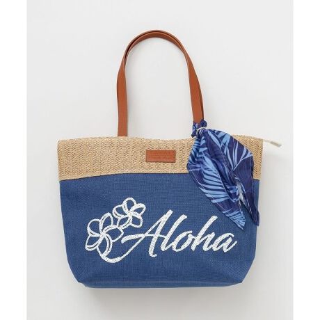 [型番:42QP6101-2026]ALOHAのスパンコールロゴが輝くトートバッグ。軽くて大容量、内ポケット付きで収納も安心。ビーチやショッピングにぴったりのサイズ感で、リゾート気分を高める華やかなデザイン。