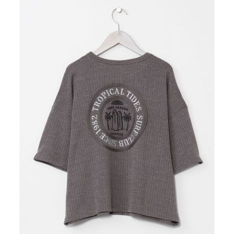 [型番:4CA-6124-2026]機械刺しゅうとコード刺しゅうを組み合わせたデザインが目を惹くTシャツ。ワッペンがポイントになった通気性の良いワッフル生地で、軽やかな着心地。短めの丈感がバランスよく、トレンド感のあるスタイルを楽しめます。