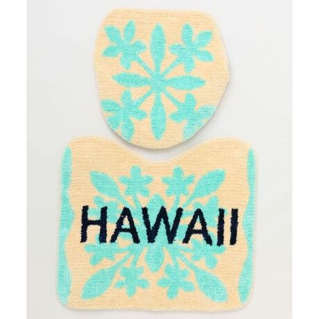 [型番:4ILP6101-2026]ハワイアンキルトモチーフが描かれたトイレセット。爽やかなカラーと優しい風合いがトイレ空間を明るくしてくれます。南国の自然を感じるデザインで、毎日の暮らしに癒しを添えるセットです。