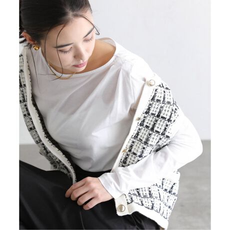 長めの袖と程よいフィット感でレイヤードにも使いやすく、ジャケットやベストのインナーとしても活躍します。