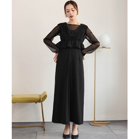上半身にボリュームを持たせたデザインは自然とスタイルアップを叶え、ウエストのペプラムでさらにメリハリをプラス。