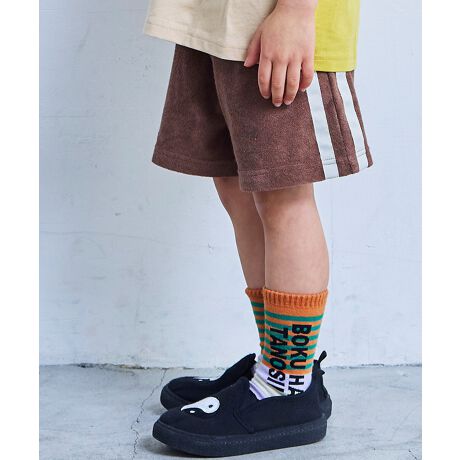 スポーティーなデザインのパイル生地ショーツ。