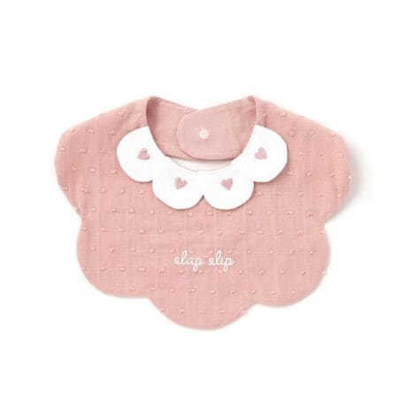 花びらが重なったような襟が目を引く、女の子用スタイ。