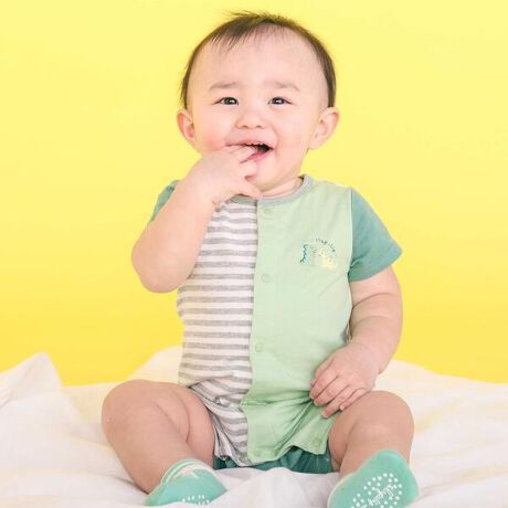 伸縮性のある天竺素材で、活発に動くベビーも快適。