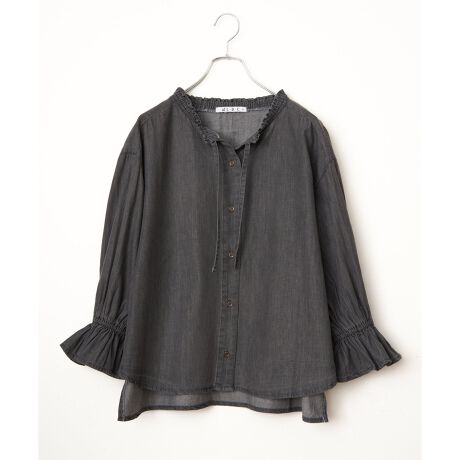 軽やかなライトオンスデニムを使用した、表情のあるシャーリングブラウス。