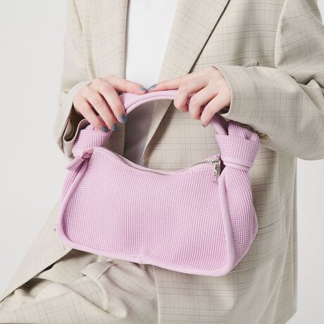 柔らかいワッフル素材を使用した、結び目デザインがポイントのバッグ。