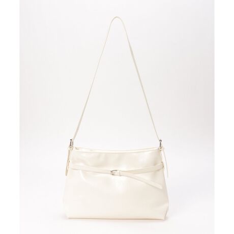 艶のある合皮の風合いが印象に残る、ベルテッドデザインのショルダーバッグ。
