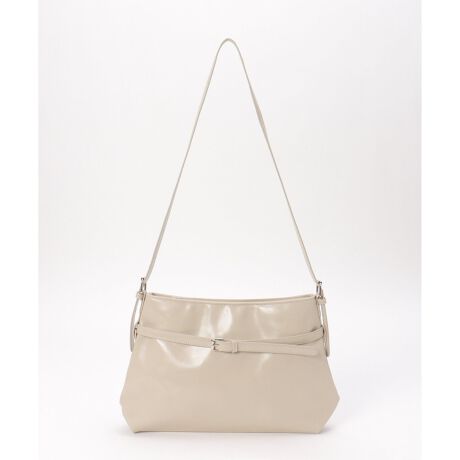 艶のある合皮の風合いが印象に残る、ベルテッドデザインのショルダーバッグ。