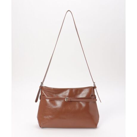 艶のある合皮の風合いが印象に残る、ベルテッドデザインのショルダーバッグ。
