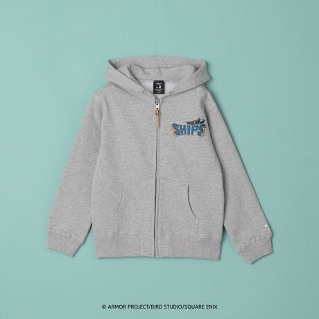 ドラゴンクエストシリーズのタイトルロゴをイメージしてデザインされた、遊び心あふれるSHIPSロゴを左胸に配したジップアップフーディ。