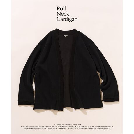 ロールネック仕様のニットカーディガン。柔らかな風合いと、程よいハリ感を併せ持ち、カットソー感覚で気軽に取り入れられる一着です。