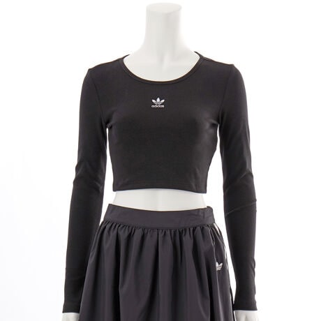 [型番:JTN58-IW5725]ソフトで伸縮性に優れたこのアディダス長袖Tシャツは、身体を包み込むような、フィット感に優れた着心地が特徴。リブ仕上げのニットが身体のラインに沿って伸縮し、自由な動きをかなえる。軽量素材を用いたクロップド丈のTシャツは、家でくつろぐときにはハイライズのジョガーパンツと合わせたり、友達と夜出かけるときにはミニスカートとスニーカーを合わせたりしたい。
