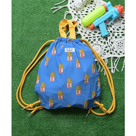 遊び心たっぷりの総柄デザインが目を引くナップザックです。