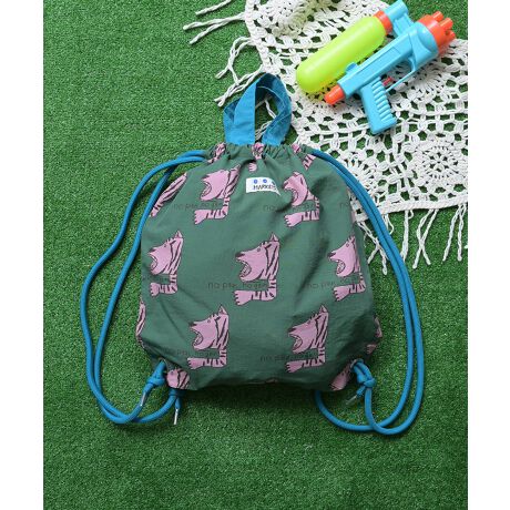 遊び心たっぷりの総柄デザインが目を引くナップザックです。