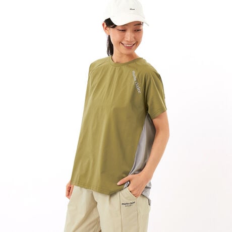 [型番:415710]大人可愛い配色がポイントの異素材切替えのチュニック。お尻までカバーしてくれる安心のチュニック丈でカジュアルにも大活躍してくれます!裾フレアでボディラインもカバーしつつ風を通し快適に着られます。