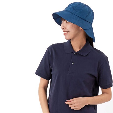 [型番:415795]クロスに重なっている部分のツバを折り曲げて目線をキープしたり、クロス部分を前にして日除けにしたり、またはツバの長い部分を前にして日除けにしたりご自身にお似合いの角度を楽しめるマルチハットです。