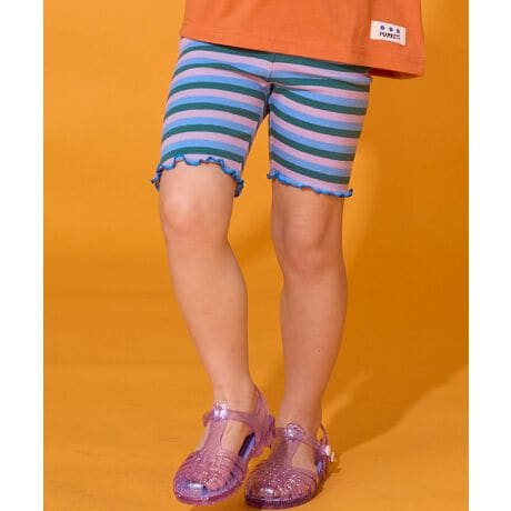 配色のきいた先染めボーダーが目を引くバイカーパンツです。