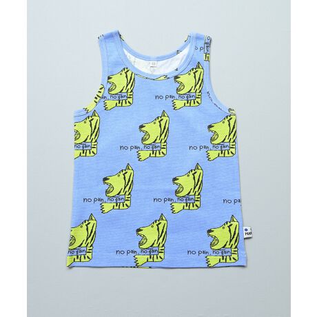 遊び心のある総柄デザインが目を引くタンクトップです。