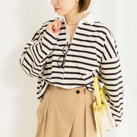 ・クラシックなイングランド式の「台襟付きカラー」を採用したラガーシャツ