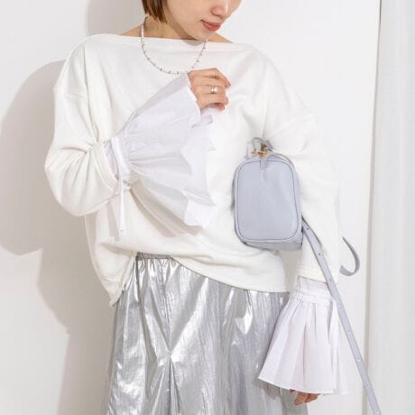 ・シンプルなカットソーに、袖口の異素材フリルをドッキングした大人フェミニンなデザイン