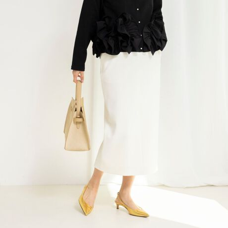 ・縦横に伸縮するカットソーを重ねたダブル組織の素材を使用したタイトスカート