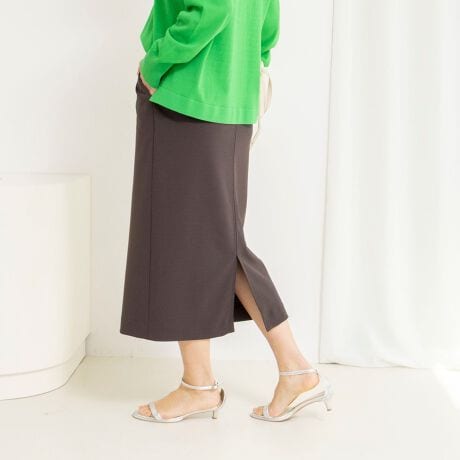 ・縦横に伸縮するカットソーを重ねたダブル組織の素材を使用したタイトスカート